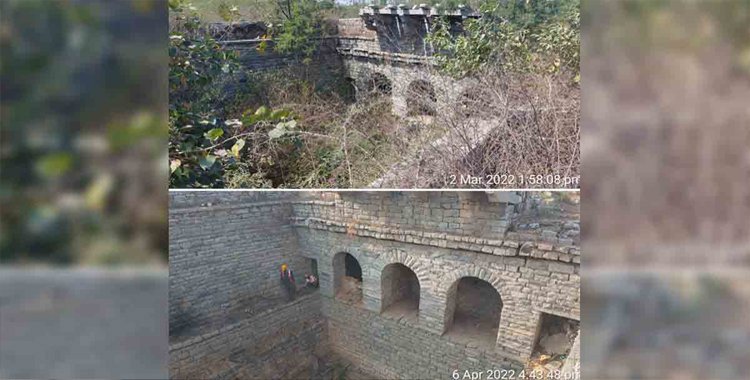 నీటి వనరు లోపల సంవత్సరాలుగా పేరుకుపోయిన చెత్త, సిల్ట్ మరియు శిధిలాలు తొలగించబడ్డాయి మరియు నిర్మాణాన్ని కప్పి ఉంచిన వృక్షసంపదను కూడా తొలగించారు, ఇది మెట్ల బావికి కొత్త జీవితాన్ని ఇచ్చింది.